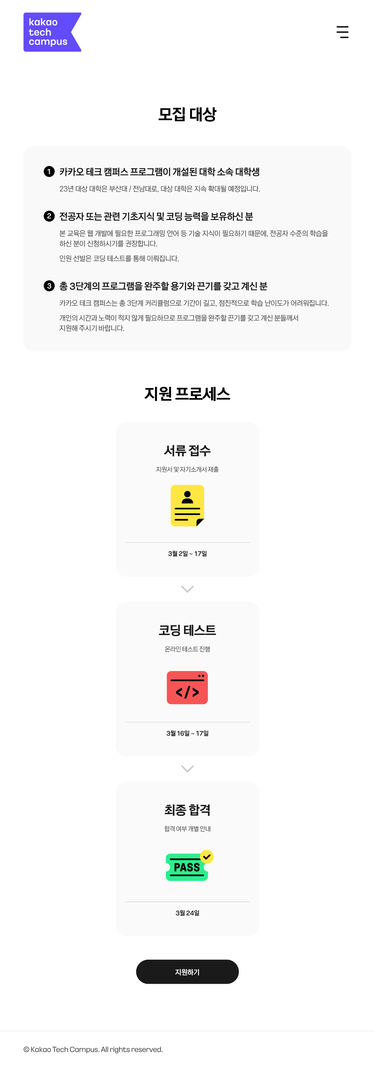 카카오테크 캠퍼스의 철학과 디자인 아이덴티티를 일관되게 유지하며